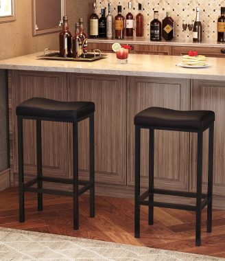 HOOBRO Bar Stools, Set of 2 Bar Chairs, Counter Height Stools, Saddle Barstools with Curved Surface, 24.8 Inches, 2.4″ Thick Upholstery, for Kitchen, Dining Room, Cafe Black BB10BY01
